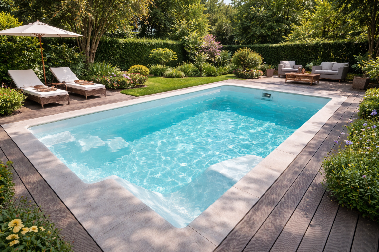 Son revêtement lisse et non poreux limite la formation d algues ,ce qui réduit considérablement l'entretien ,moins de produits chimique nécessaire